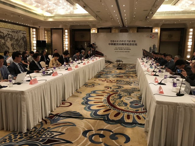 剛才樸銀夏大使在發(fā)言中提出,甚至是有些悲觀地說今天是唯一一場(chǎng)中韓之間關(guān)于未來戰(zhàn)略方向發(fā)展的對(duì)話。但其實(shí)在我們討論的過程中,習(xí)近平主席和文在寅總統(tǒng)已經(jīng)互通賀電,互相慶祝中韓建交25周年。兩國(guó)最高領(lǐng)導(dǎo)人都表示要鞏固政治互信,妥善處理分歧,推動(dòng)兩國(guó)關(guān)系的健康穩(wěn)定發(fā)展。我想,這是我們大家共同的心聲、共同的愿望。今天我們所有在會(huì)上的各位,都愿意看到我們兩國(guó)的關(guān)系向著更為和平健康的方向發(fā)展。