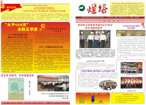 2014年6月26日,國能中電塔山維護項目部參加山西漳電大唐塔山發(fā)電公司召開的“大干100天、決勝三季度”專項活動動員會,并與業(yè)主簽訂了安全生產(chǎn)責(zé)任狀。項目部為此制定了各項組織、技術(shù)、安全措施。同時,項目部專題稿件“大干100天,脫硫在行動”榮登于塔山發(fā)電公司《塔山燈塔報》第23期一、二版。
