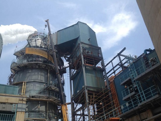 2015年5月1日11時(shí)16分,在業(yè)主、監(jiān)理、國能中電太倉項(xiàng)目部、施工單位以及相鄰國華太倉電廠業(yè)主的共同見證下,6#吸收塔增高施工當(dāng)天成功頂升圍板,這預(yù)示著協(xié)鑫太倉超低排放項(xiàng)目的建設(shè)進(jìn)度更進(jìn)一步。