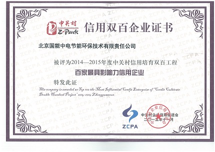 2015年11月16日,由中國人民銀行、市經(jīng)濟(jì)和信息化委、中關(guān)村科技園區(qū)管理委員會、中關(guān)村企業(yè)信用促進(jìn)會等多家企業(yè)、協(xié)會組織聯(lián)合發(fā)起召開的“信用中關(guān)村”系列活動暨2015中關(guān)村信用雙百企業(yè)發(fā)布會在北京舉行。我公司被評選為2014~2015年度中關(guān)村信用培育雙百工程“百家最具影響力企業(yè)”。