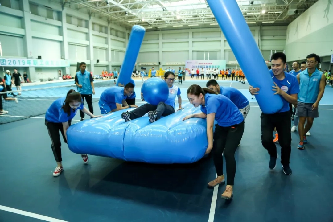 此次活動(dòng)的項(xiàng)目經(jīng)過(guò)了精心設(shè)置,將在職工中普遍開(kāi)展的羽毛球、籃球項(xiàng)目設(shè)置為專(zhuān)業(yè)競(jìng)技項(xiàng)目,此外,綜合考慮職工身體素質(zhì)差異和群眾參與性,設(shè)置了輕量化、趣味性更強(qiáng)的團(tuán)體競(jìng)技項(xiàng)目七項(xiàng):滾滾向前、旋轉(zhuǎn)飛碟、旱地龍舟、漢諾塔、動(dòng)感顛球、超級(jí)障礙賽、拔河。