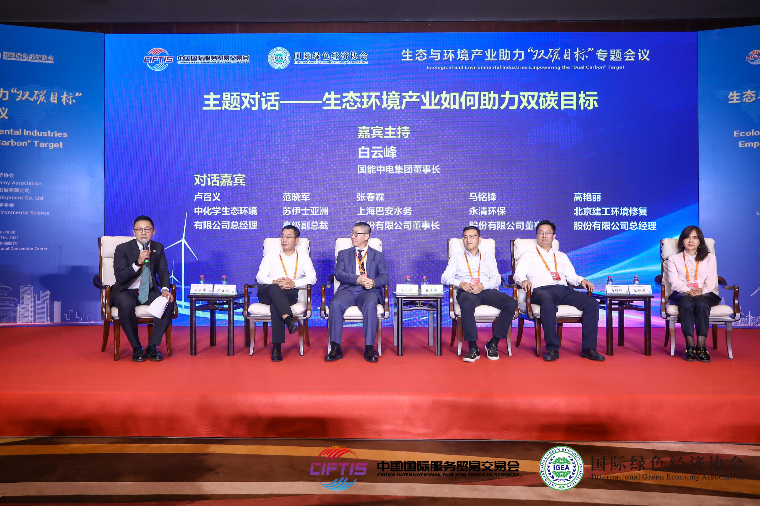 會上,白云峰作為特邀嘉賓主持“生態(tài)環(huán)境產(chǎn)業(yè)如何助力雙碳目標(biāo)”主題對話活動,與來自新能源、環(huán)境修復(fù)、污水處理等領(lǐng)域的專家就生態(tài)環(huán)境產(chǎn)業(yè)如何助力碳中和目標(biāo)的實(shí)現(xiàn)展開高層對話。