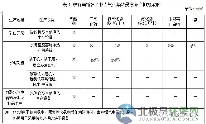 1.2 自本標(biāo)準(zhǔn)實施之日起,新建企業(yè)執(zhí)行表1規(guī)定的大氣污染物最高允許排放濃度。