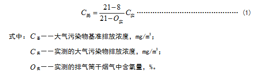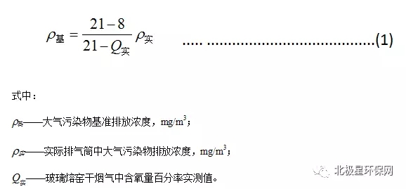 1.4 對于玻璃熔窯排氣(純氧燃燒除外),應(yīng)同時對排氣中含氧量進(jìn)行監(jiān)測,實測排氣筒中大氣污染物排放濃度應(yīng)按式(1)換算為含氧量為8%狀態(tài)下的基準(zhǔn)排放濃度,并以此作為排放是否達(dá)標(biāo)的依據(jù)。其他車間或生產(chǎn)設(shè)施排氣按實測濃度計算,但不得人為稀釋排放。