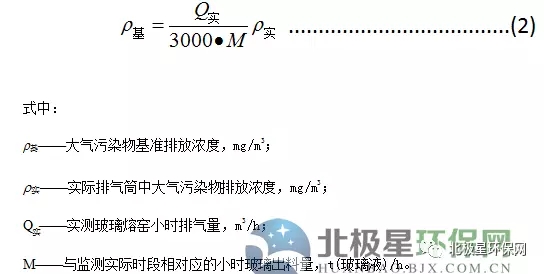 1.5 純氧燃燒玻璃熔窯應(yīng)監(jiān)測排氣筒中大氣污染物排氣濃度、排氣量及相應(yīng)時間的玻璃出料量,按式(2)計算基準(zhǔn)排放量[3000m3/t(玻璃液)]條件下的基準(zhǔn)排放濃度。并以此作為判定排放是否達(dá)標(biāo)的依據(jù)。大氣污染物排放濃度、排氣量、產(chǎn)品產(chǎn)量的監(jiān)測、統(tǒng)計周期為1h,可連續(xù)采樣或等時間間隔采樣獲得大氣污染物排放濃度和排放氣量數(shù)據(jù),玻璃出料量數(shù)據(jù)以企業(yè)統(tǒng)計報表為依據(jù)。