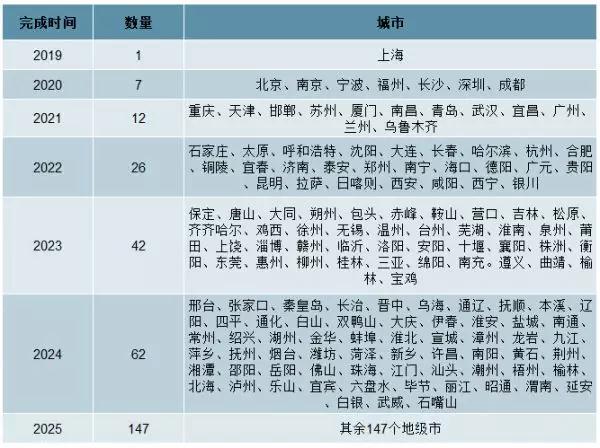 各地級城市垃圾分類推廣節(jié)奏逐步釋放。我們依據(jù)各城市已推行的垃圾分類政策及各城市生活垃圾清運(yùn)量及處置規(guī)模等屬性推測垃圾分類政策推行進(jìn)度??紤]到政策實(shí)際推行情況,保守假設(shè)垃圾分類年化市場釋放節(jié)奏為:2019年上海;2020年北京/南京/成都/深圳等7個(gè)重點(diǎn)城市;2021年重慶/天津/蘇州等12個(gè)重點(diǎn)城市;2022年46個(gè)重點(diǎn)城市中剩余的26個(gè)重點(diǎn)城市;2023年保定/大同/吉林等42個(gè)地級市;2024年邢臺/淮安/九江等62個(gè)地級市;2025年剩余的地級市。在空間測算中均以該推廣節(jié)奏為前提進(jìn)行測算。